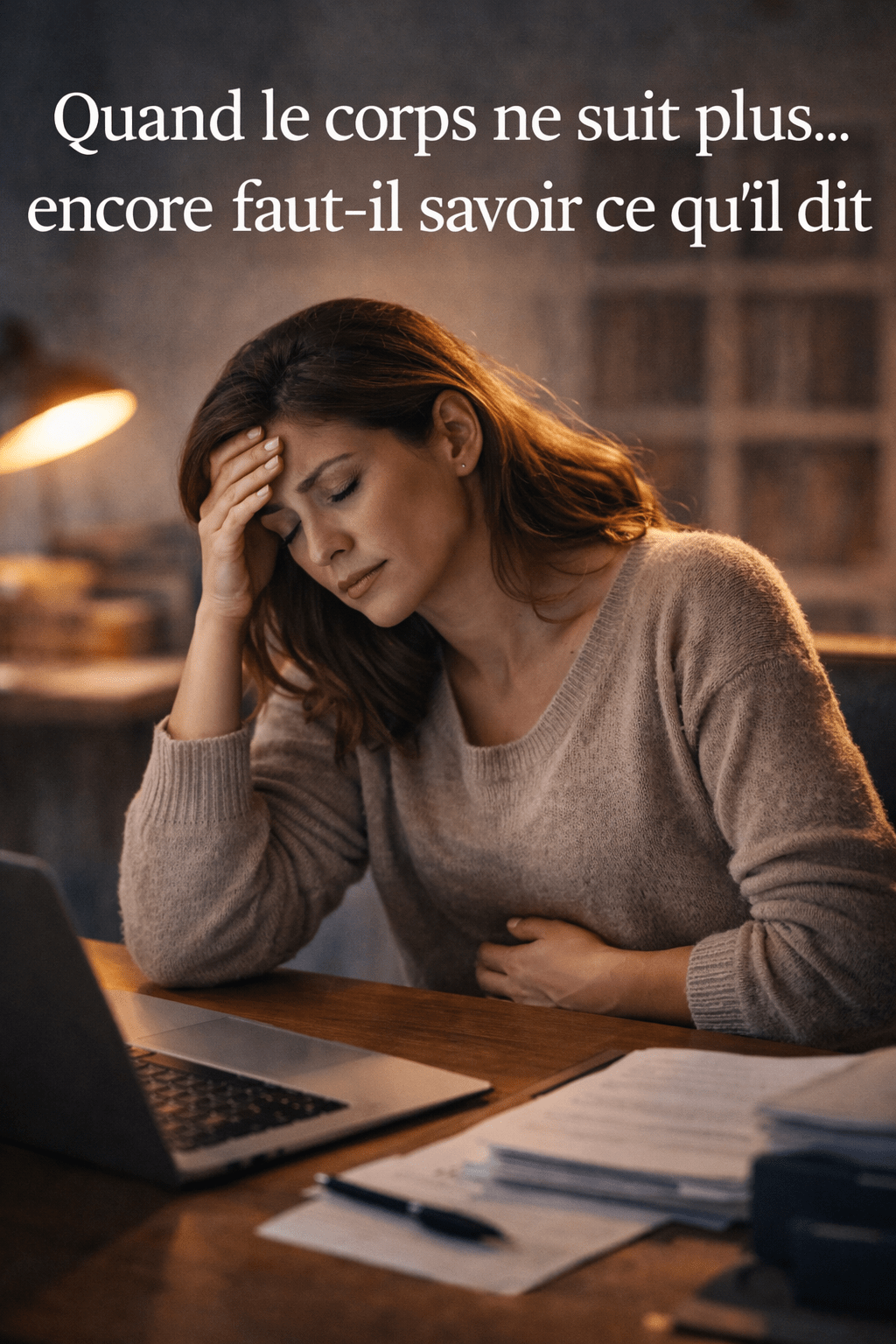 Un ventre qui se noue, une respiration qui se raccourcit, une fatigue qui s’installe, une tension mentale inhabituelle… Ces signes ne donnent pas directement une solution, mais ils peuvent permettre de comprendre ce qui ne s’ajuste plus.